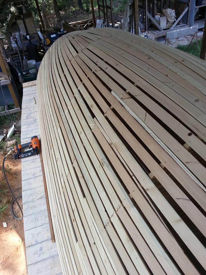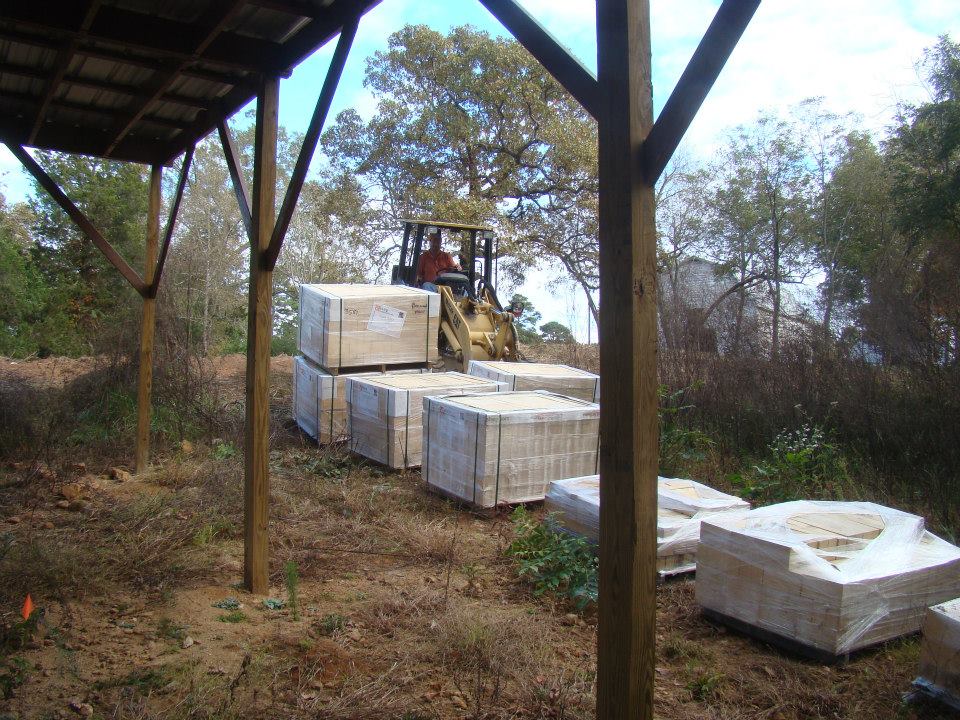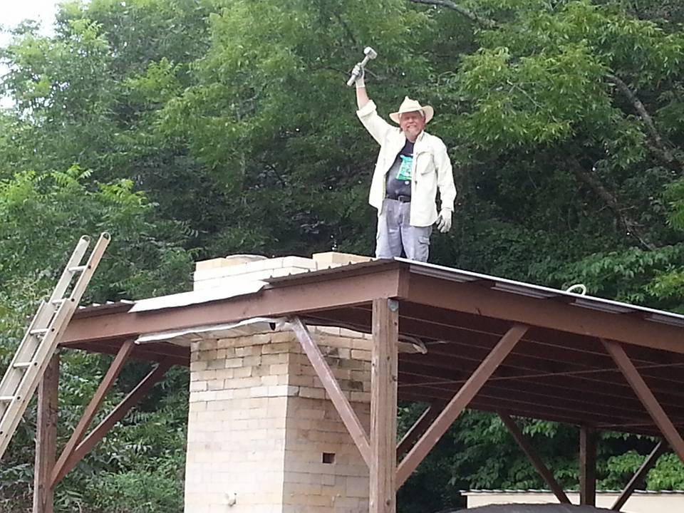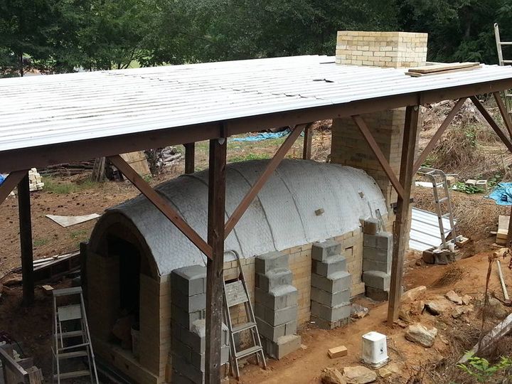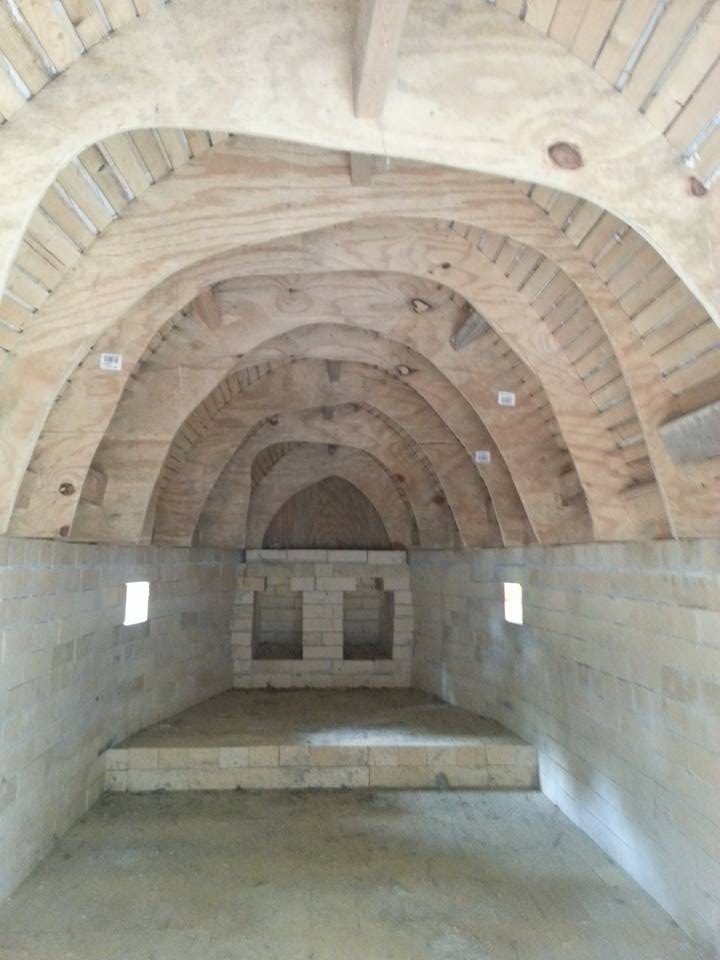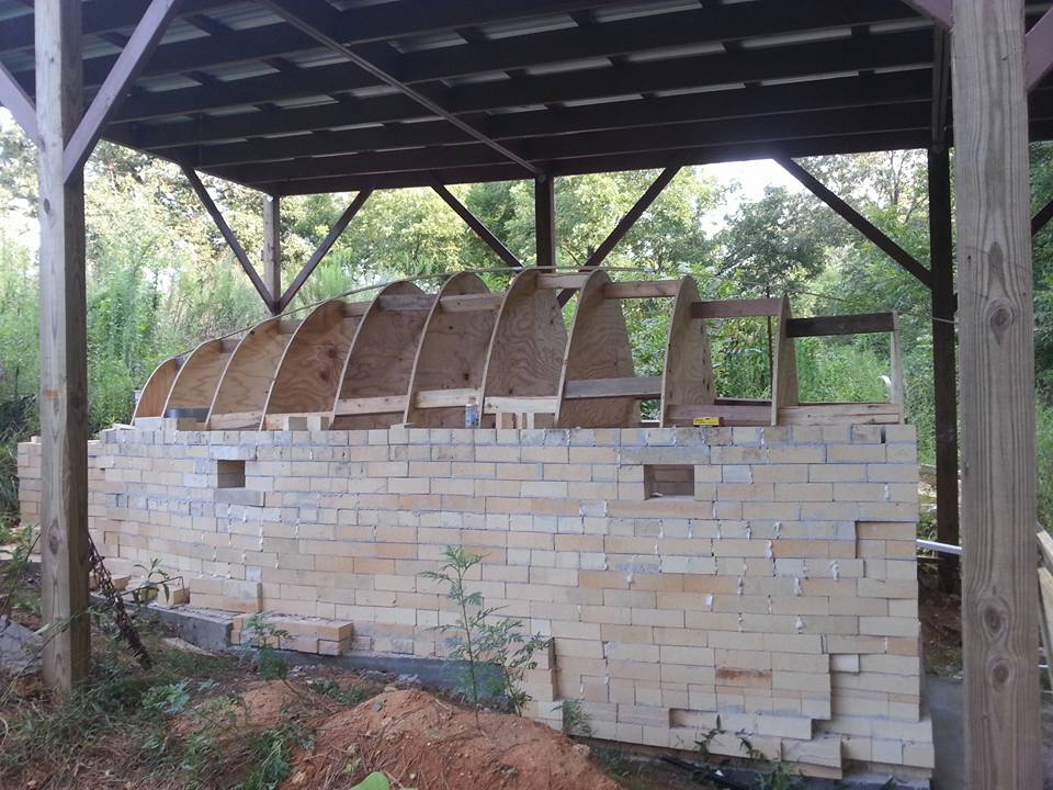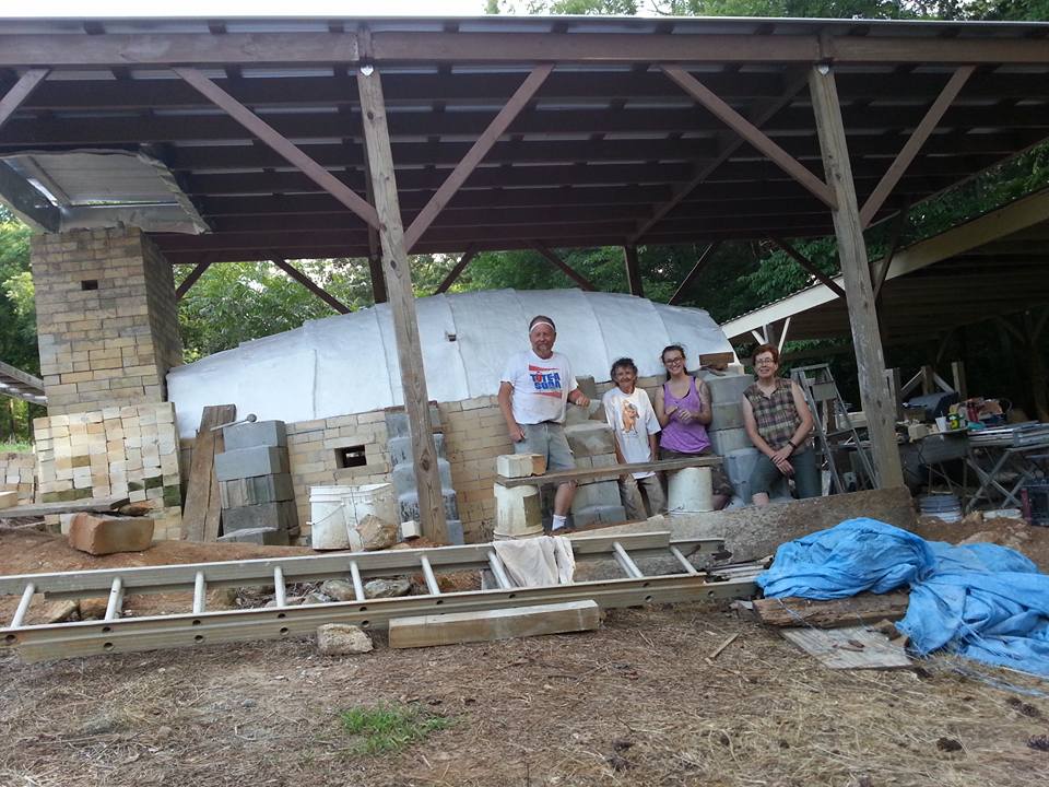 Construction of the kiln and kiln pad was a group effort. Friends from near and far lent a hand in everything from grading the landscape and framing the overhang to forming the arch and laying bricks.